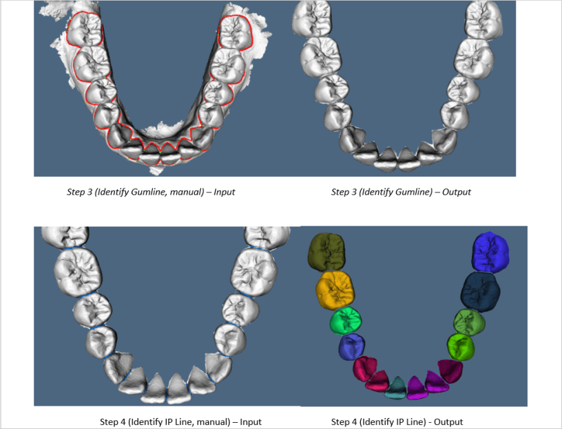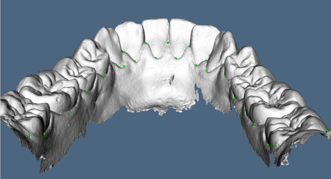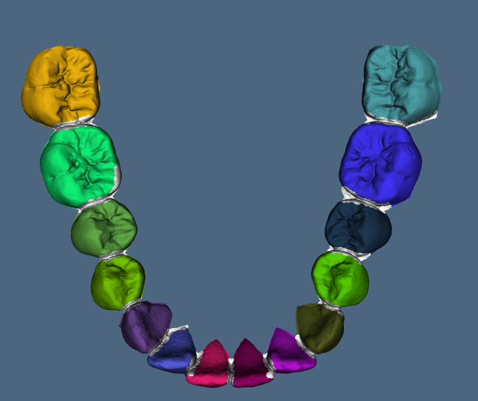 We then just detect undercuts and IPs by mesh painting and segmenting to get each tooth separately